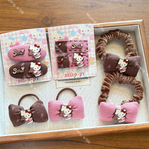 新款卡通简约蝴蝶结猫咪发夹发绳甜美少女心侧边夹马尾发圈发饰
