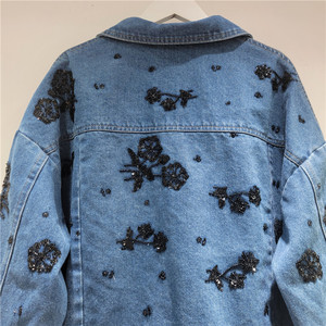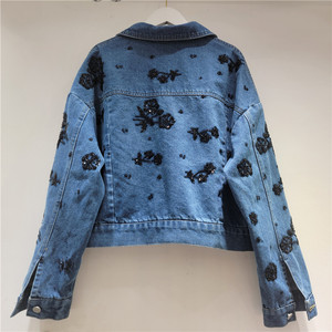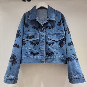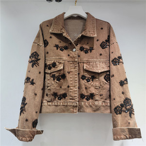 2025秋季复古钉珠牛仔外套女宽松钉钻花朵翻领短款上衣女潮