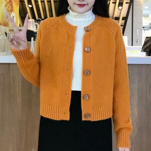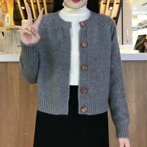 韩版宽松显瘦软糯针织开衫女秋冬新款单排扣纯色简约毛衣上衣外套