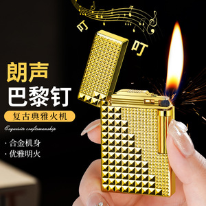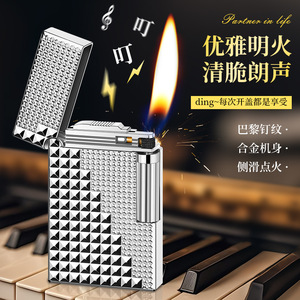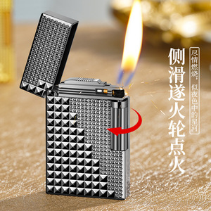 DK912朗声钢音侧滑砂轮充气斜火打火机大小巴黎钉高档礼品打火机