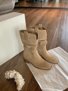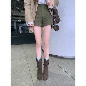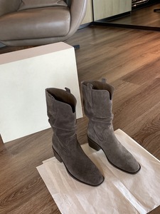 增高~圆头V口粗跟厚底显瘦大筒围堆堆短靴女