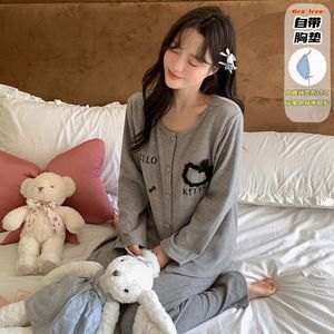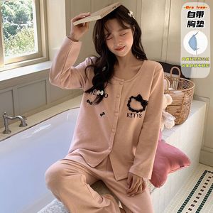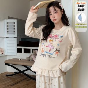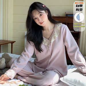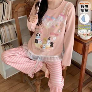 直播睡衣女秋冬新款保暖长袖羊绒蚕丝韩系甜美花边卡通家居服套装