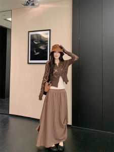 镂空外搭针织开衫复古褶皱宽松不规则半身裙2025秋季新款套装女潮