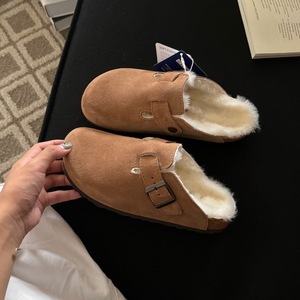 秋冬新款牛皮厚底毛毛拖鞋女勃肯外穿包头舒适休闲半拖鞋