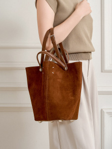 真皮手提包跨境大包复古风上班通勤牛皮大容量女通勤高级感托特包