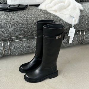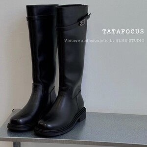 靴子女2025秋冬新英伦风锁扣不过膝长筒靴黑色骑士靴粗跟瘦瘦靴