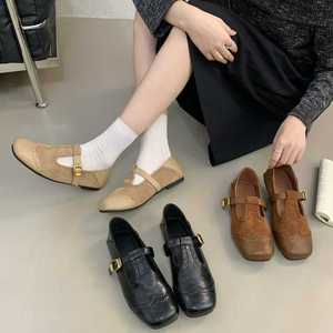 复古绒面平底单鞋女春秋新款百搭一脚蹬软底美拉德玛丽珍芭蕾舞鞋
