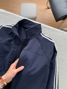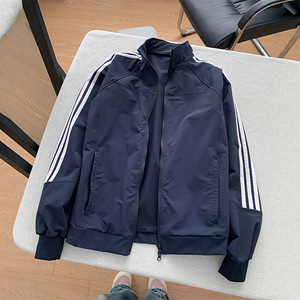 藏青色三条杠外套男女春秋季cleanfit短款立领夹克美式三防冲锋衣