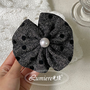 日韩ins博主同款气质灰色毛呢波点花苞香蕉夹高级珍珠马尾发夹女