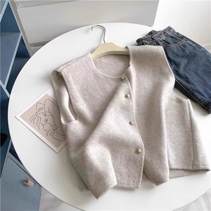 温柔系纯羊毛小金扣子圆领显瘦针织马甲背心女韩系宽松坎肩上衣女
