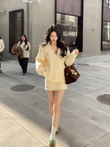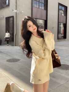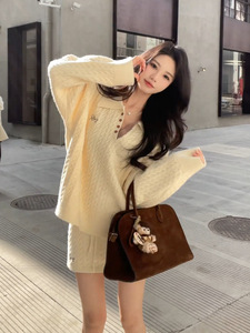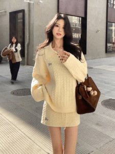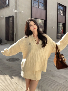 韩系学院风麻花针织毛衣高腰裙裤套装女2025新款慵懒风半裙两件套