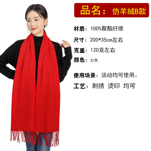 厂家直销中国红年会红围巾定制logo开业典礼公司聚会年会批发刺绣