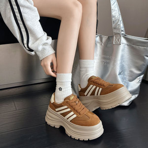欧洲站磨砂真皮松糕厚底鞋女春秋新款百搭时尚增高8CM运动休闲鞋