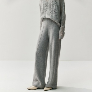 秋冬新款山羊绒针织阔腿裤女式直筒毛绒裤子高腰修身垂感显瘦长款