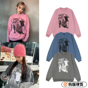 现货韩国小众潮牌MGD猫咪涂鸦印花卫衣美式复古不加绒长袖李龙馥