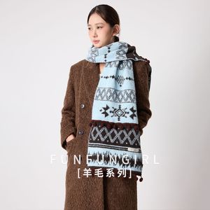 秋冬新款民族风双面针织围巾女保暖个性时尚披肩加厚御寒百搭围脖