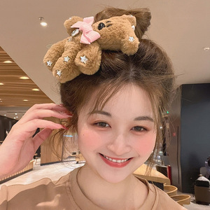 大号发夹女可爱蝴蝶结毛绒小熊碎发刘海夹侧边夹子头饰2025新款