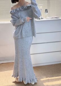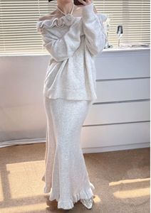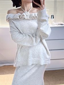 2025秋冬新款法式纯欲风一字肩设计感毛衣套头针织半身裙两件套女