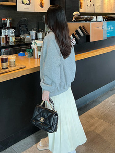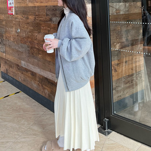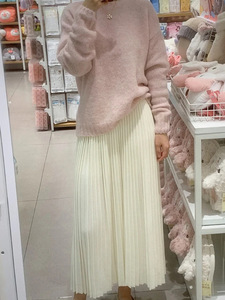 莫索特的风_高腰百褶针织半身裙慵懒白色百搭中长款半裙女