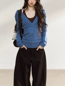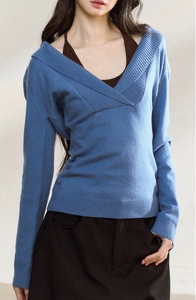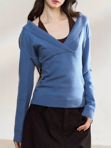 7Shifti 原创新款设计感美式辣妹蓝色毛衣小众针织打底衫上衣女