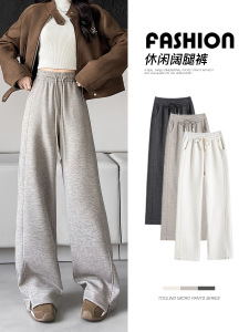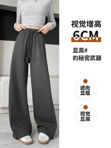 窄版羊绒阔腿裤女秋冬2025新款直筒休闲运动裤高腰垂感加绒糯米裤