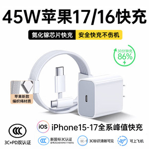 适用苹果17充电器45W氮化镓充电头套装Type-C快充头编织线3C认证