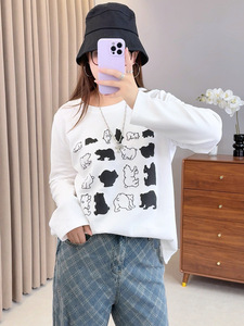 双天25年大码女装胖mm200斤卡通印花圆领T恤长袖大码上衣女W-238