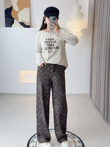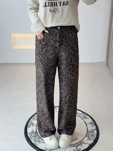 2025年双天新款胖mm大码女装秋显瘦宽松复古提花女士牛仔裤YC330