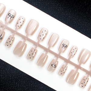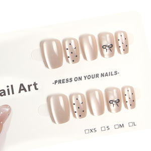 D351假指甲裸色波点蝴蝶结小钻猫眼甜酷手工封层贴片可拆卸腮红女