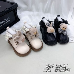 二棉童鞋2025秋冬韩版可爱卡通公仔男女童侧拉链高帮皮靴马丁靴