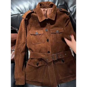 韩系老钱风穿搭复古感翻领收腰显瘦棕色夹克外套女2025年秋季