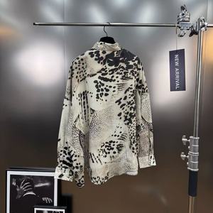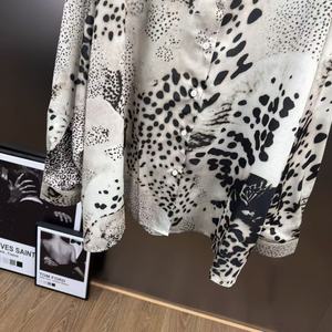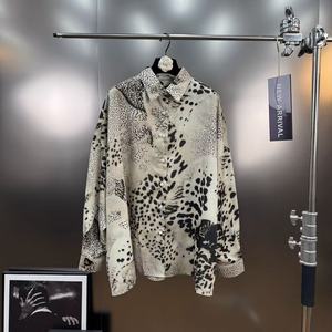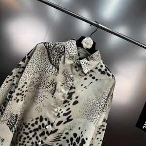 2025年秋季法式纯欲复古风豹纹印花翻领长袖慵懒百搭衬衫