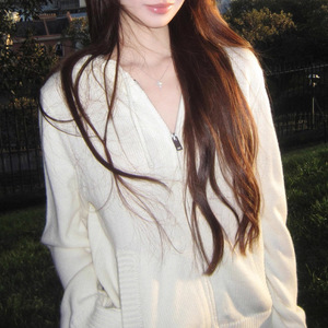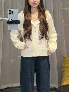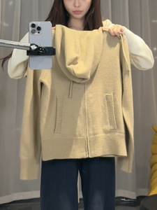 针织连帽外套2025秋季新款拉链休闲宽松毛衣开衫慵懒风上衣
