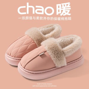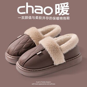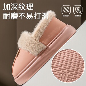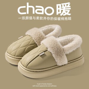 防水棉拖鞋男冬季2025新款室内家居防滑厚底加绒保暖情侣包跟棉拖