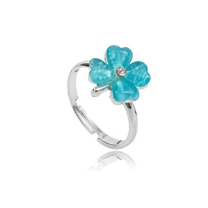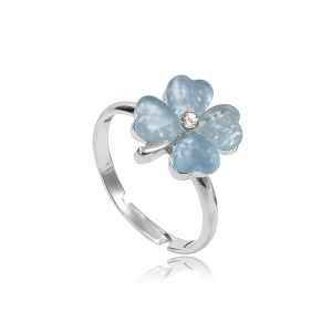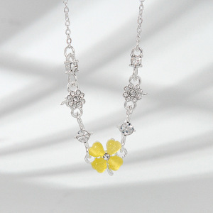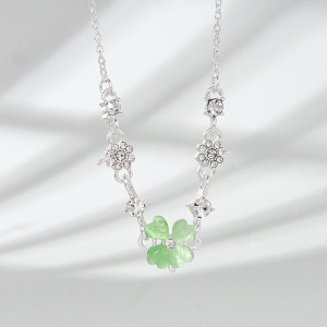 项链:厚银粉蓝拼色猫眼四叶草项链