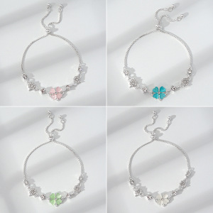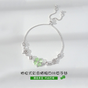 韩版新款幸运四叶草手链时尚个性森系ins 设计可抽拉调节大小手环