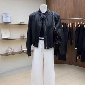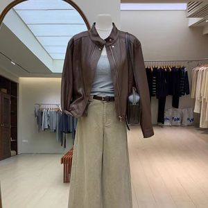 立领皮衣外套女2025两色休闲下摆抽绳收腰显瘦宽松短款夹克外套