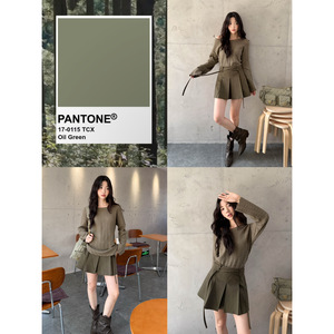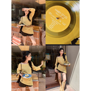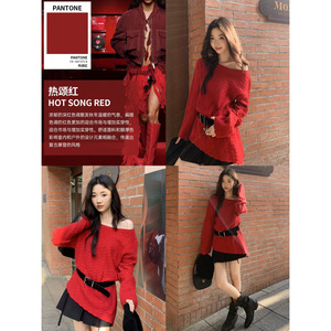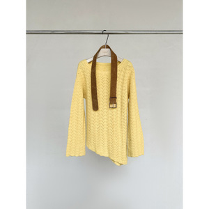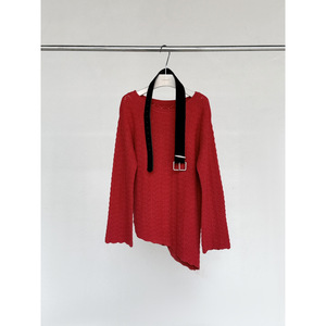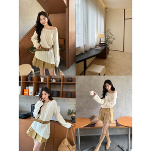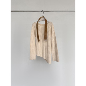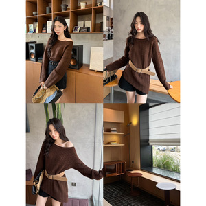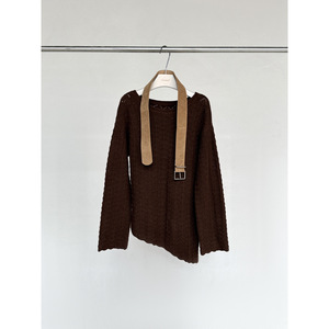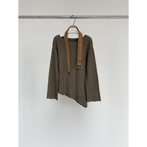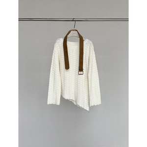 Y-斜肩编织纹理宽松不规则下摆针织衫(配腰带)(16)Q3110-