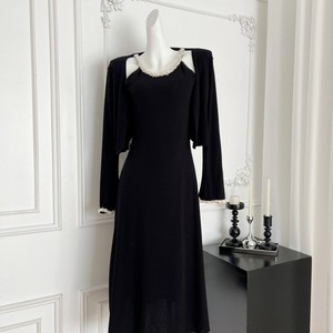 秋上新!巴黎诗集显瘦安迪绒针织开衫吊带连衣裙