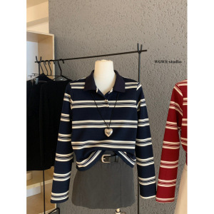 塞纳WGWE 7215秋装2025新款学院风长袖T恤POLO衫正肩上衣