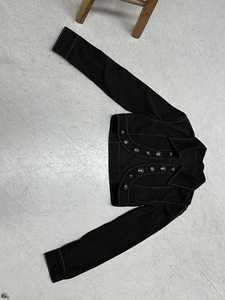 美式辣妹个性街头风时尚短款长袖牛仔外套排扣露脐翻领罩衫短上衣