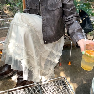 im 半岛甜茶~专机网纱花边多层次A字长裙女秋蓬蓬蛋糕裙半身裙