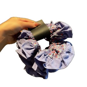 高级感优雅紫色双层碎花气质大肠圈女时尚甜美后脑勺丸子扎头绳