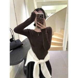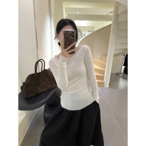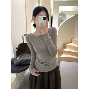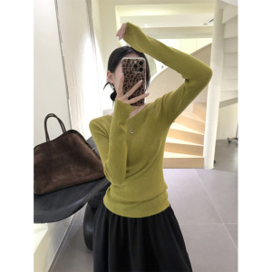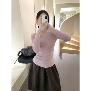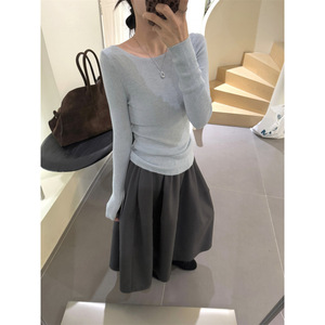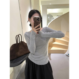 韩系清新简约温柔慵懒微透薄款针织衫休闲百搭修身显瘦纯色上衣秋