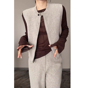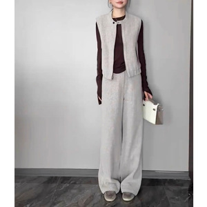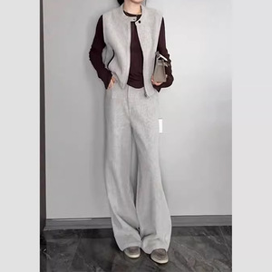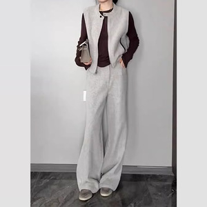 2025秋季超火一整套减龄洋气时尚大方得体穿搭灰色马甲两件套装裤
