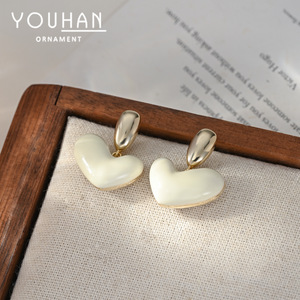 秋冬新款S925银针复古港风珐琅滴油爱心耳钉女简约百搭桃耳环饰品