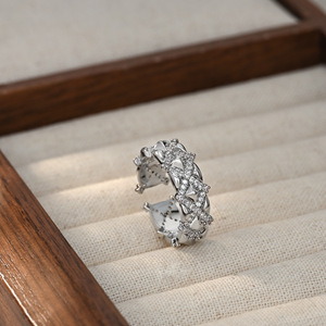 真金电镀微镶锆石个性开口戒指女高级感几何交叉指环ins风食指戒