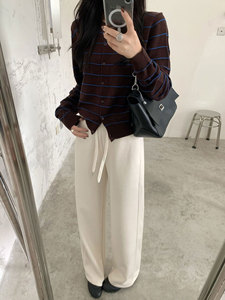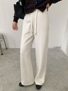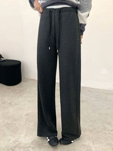 25秋冬加厚羊毛窄版阔腿裤高腰抽绳垂感保暖显瘦直筒休闲裤25627
