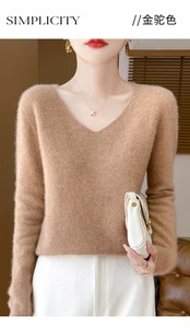 新款秋冬新款V领菱形纯色羊毛打底衫女韩系风时尚款套头毛衣宽松