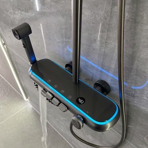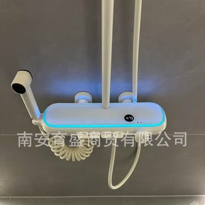 新款奶白枪灰现代数显琴键花洒套装简约增压多档调节淋浴花洒套装